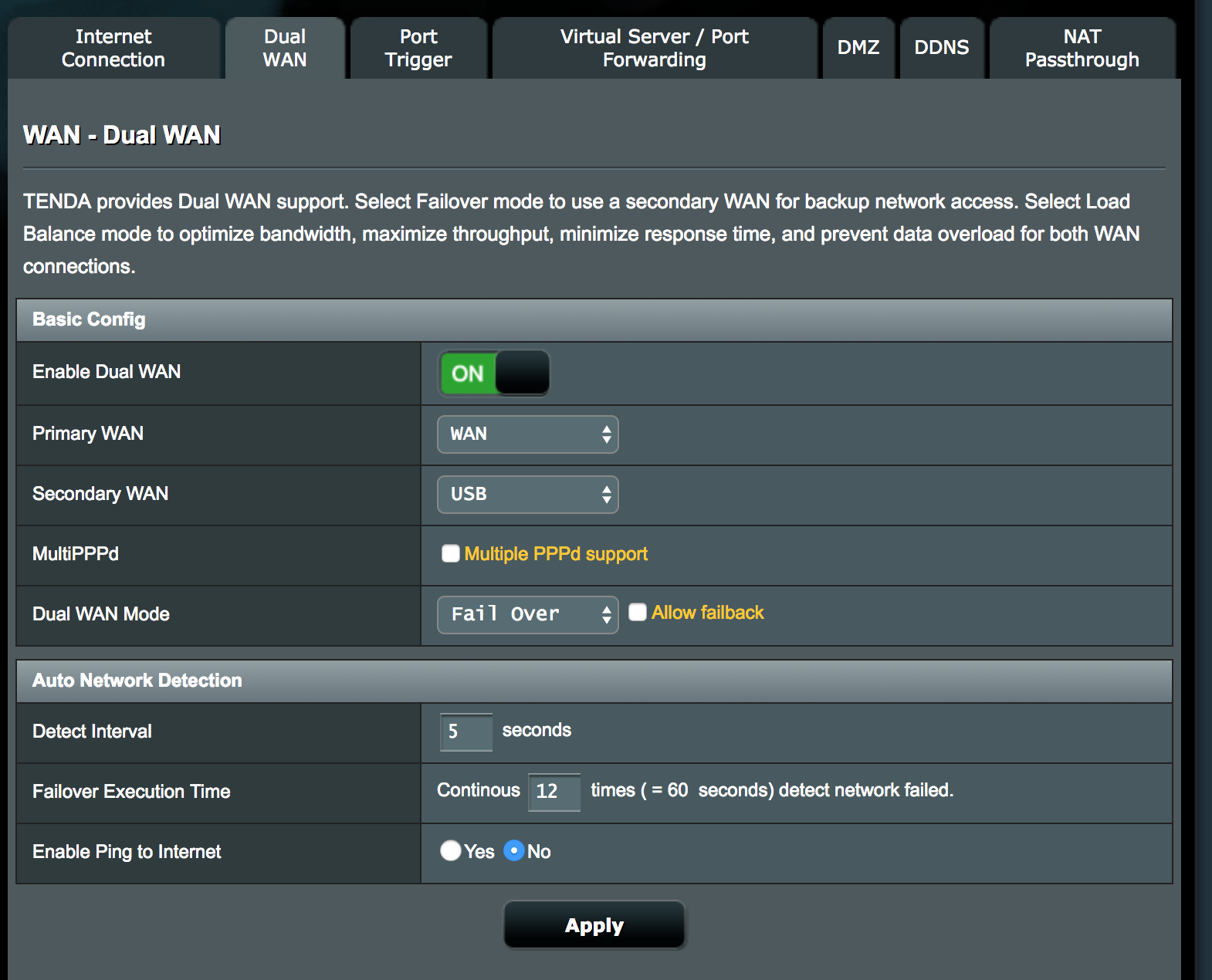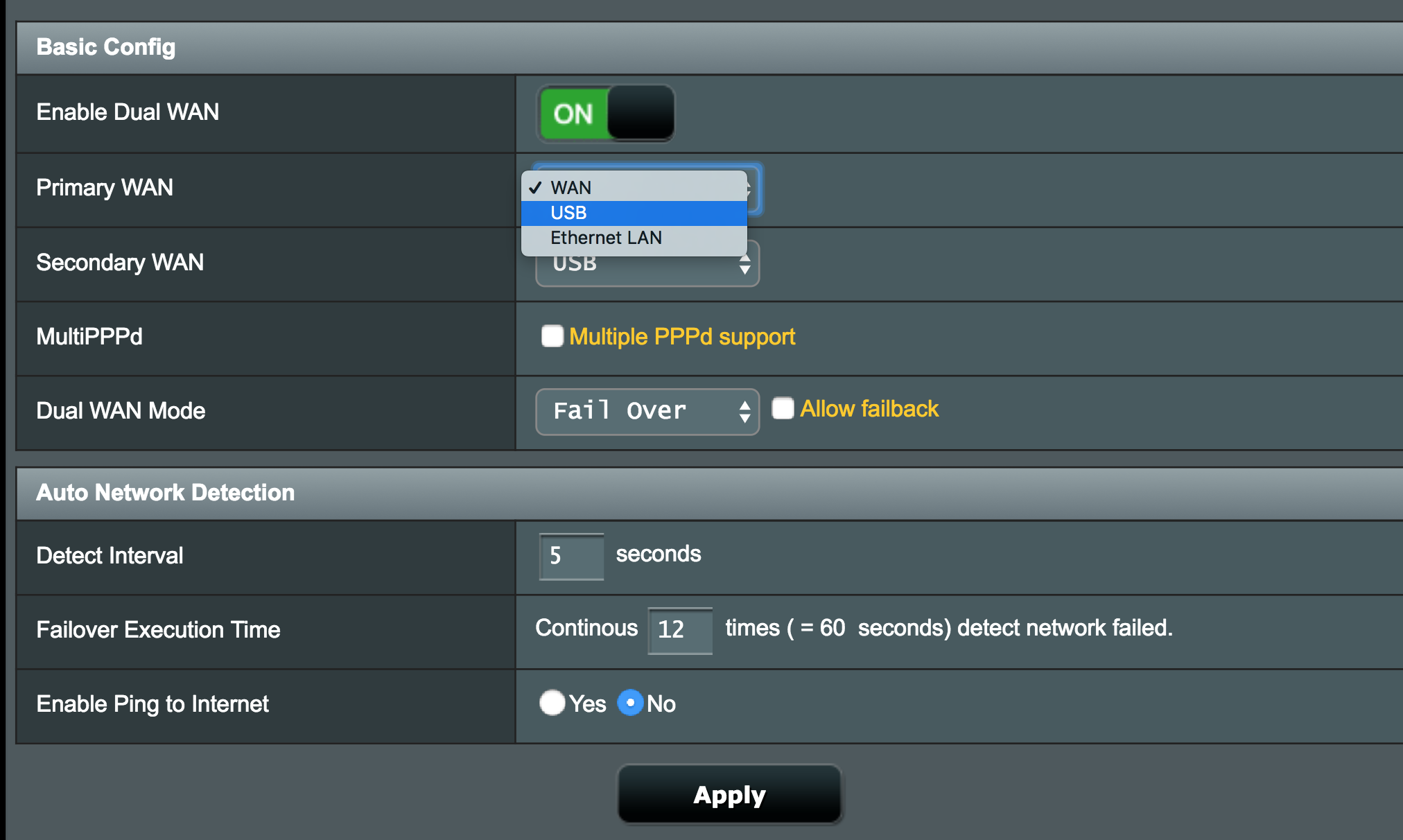 You don’t need to have Dual WAN turned on, that’s just if Slingshot falls over and you have a backup connection, like a USB dongle for connecting to a mobile network.