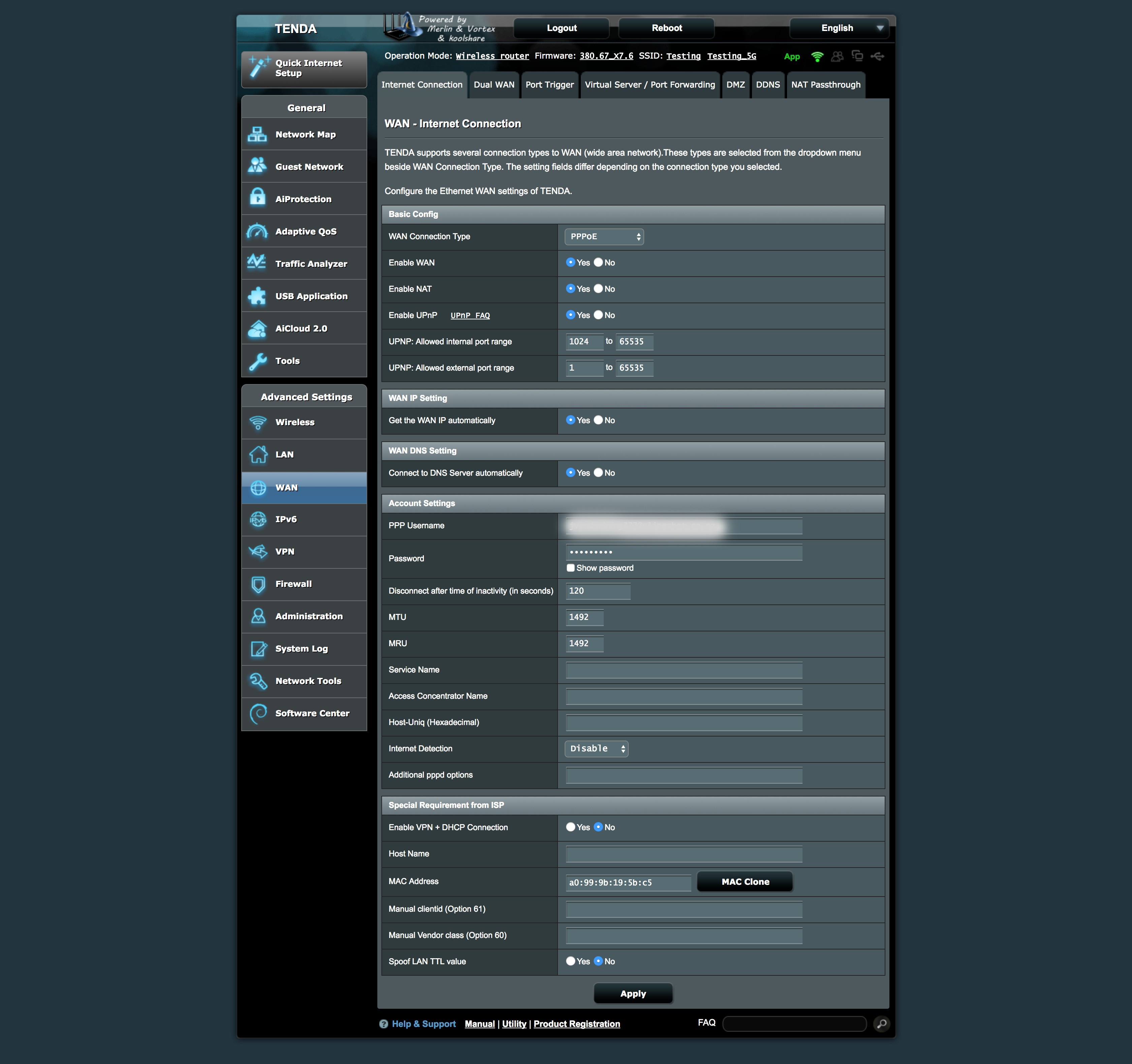 Hey! Thanks for the quick replies :) Here's a screenshot of the WAN settings: