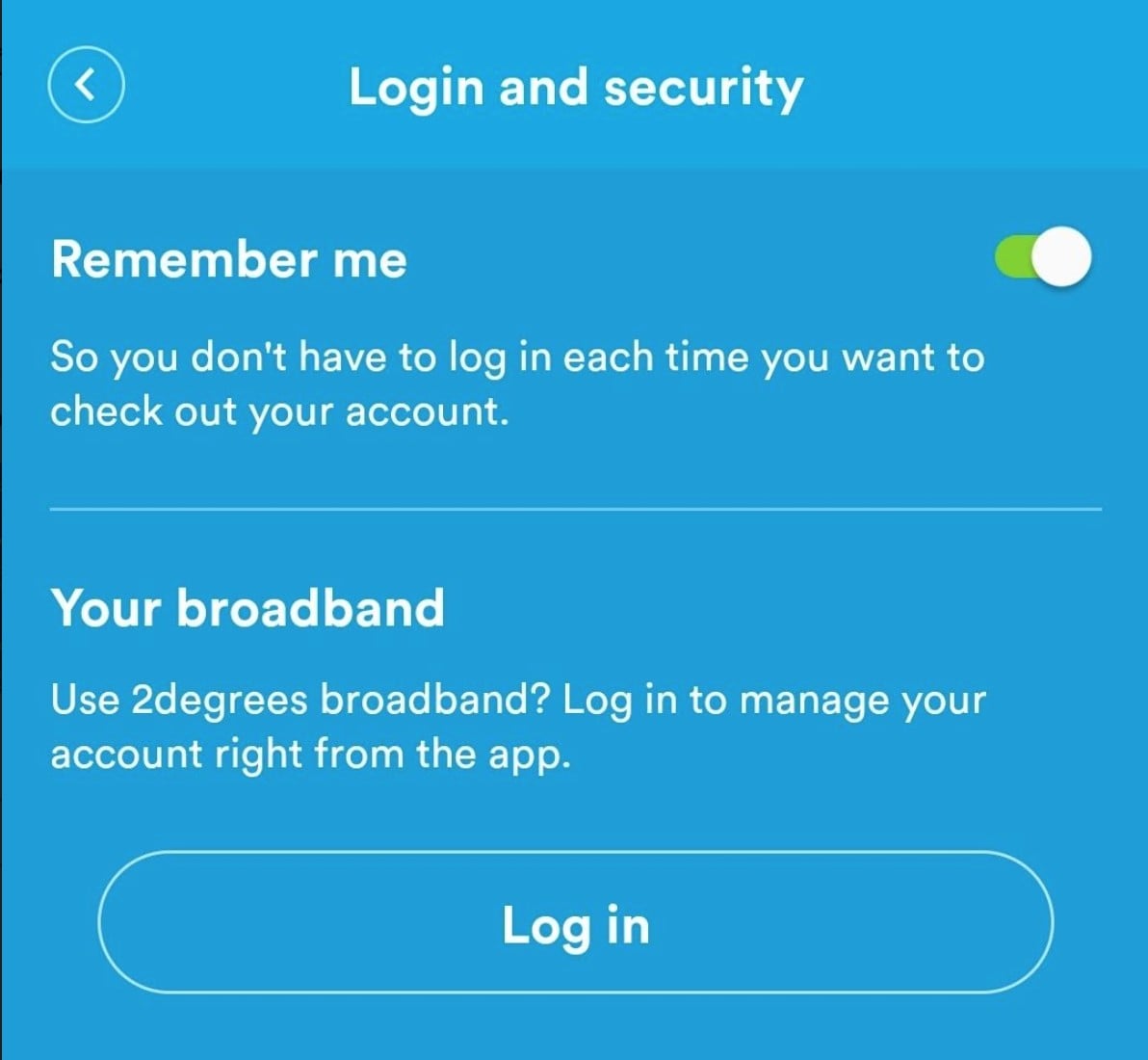 I am trying to login to my 2degrees broadband account (fibre) via the 2degrees mobile App. When I click ' Log in ' nothing happens