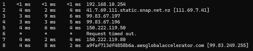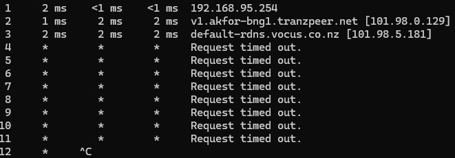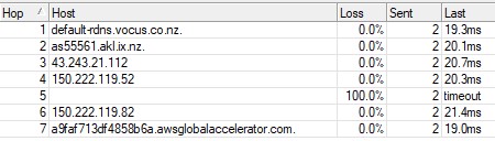 Doing a trace route shows it getting as far as default-rdns.vocus.co.nz before timing out.