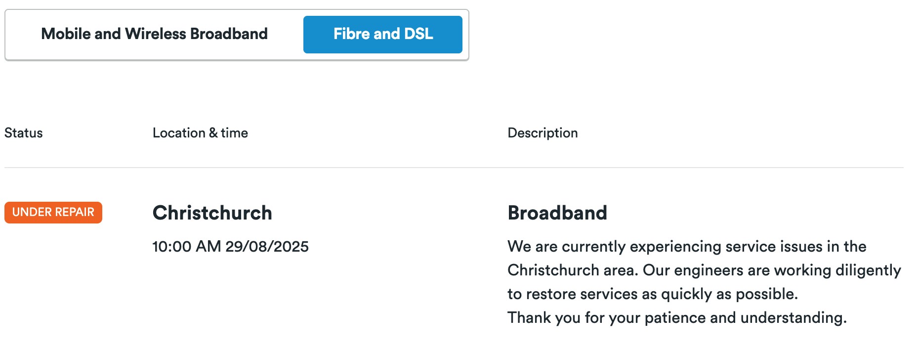Broadband maintenance | 2degrees