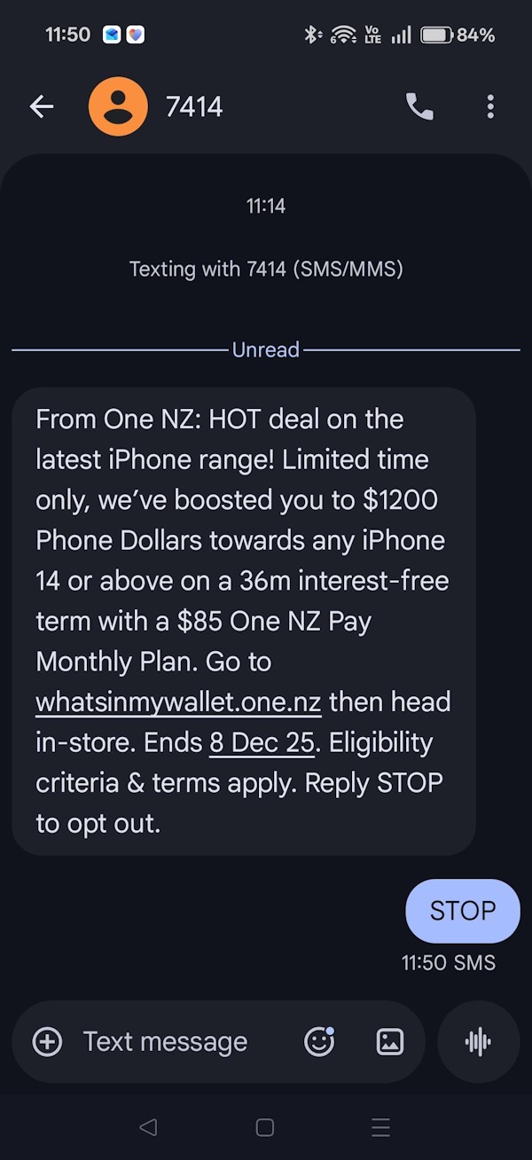 This is not on. Second time in a week I receive a SMS with something I am not interested on, and non opt-out information: