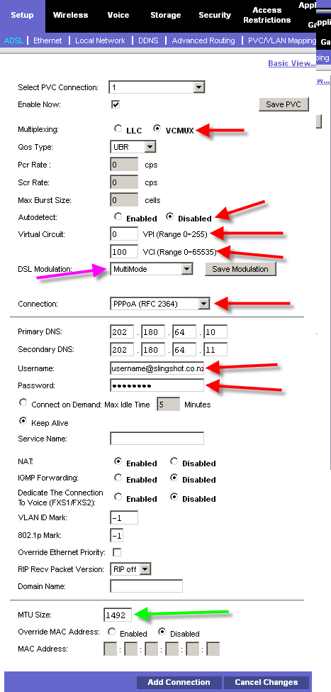 All other settings standard (and of course enter my slingshot username/password which is currently working on my old modem).