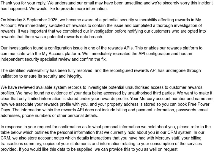 I received the email this morning. I am not feeling that comfortable with this answer from Mercury. I am going to follow up