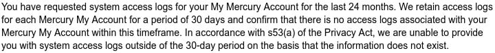 I made a request based upon the Privacy Act for logs, and they have not provided that, yet, so I have asked again.