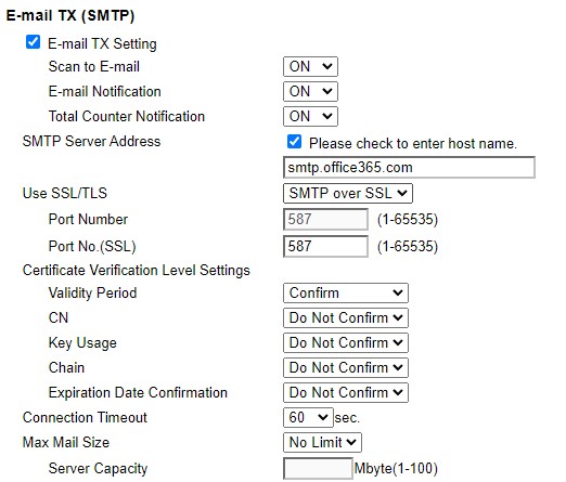 Did a test, and while the printer gave no error, and according to the useless logs, it was successful. But no emails ever arrive at O365. They're not marked as spam etc, they use the same email details as the other 5 similar printers around the company which are running fine. They just vanish.