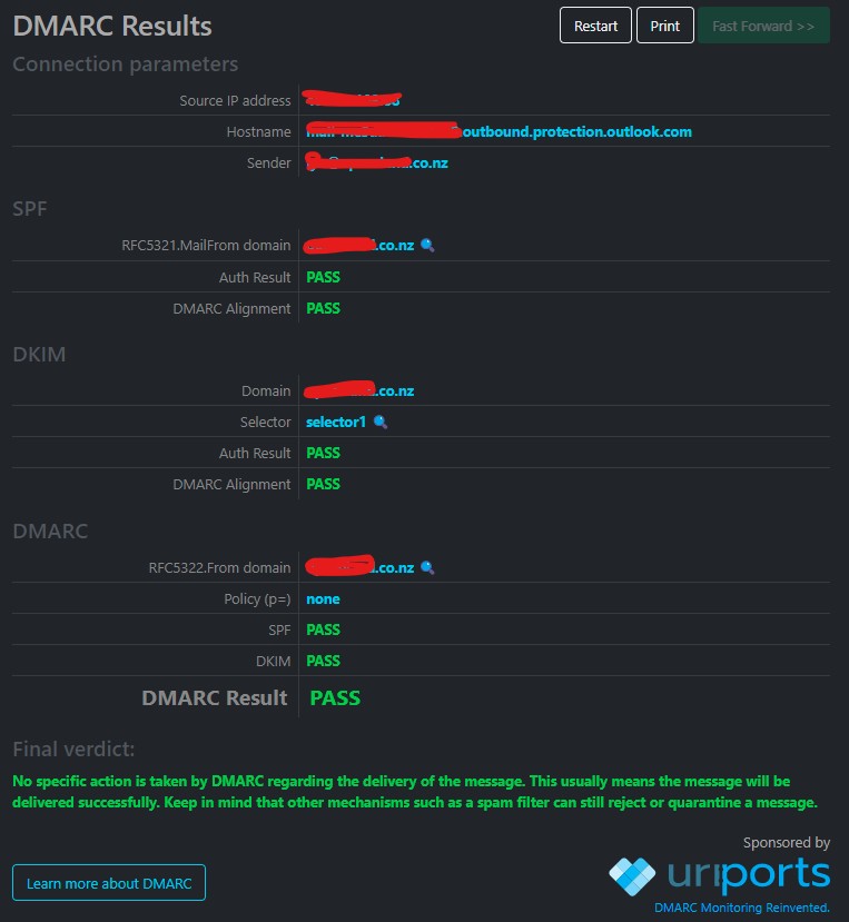 Below is the DMARC test results from an email generation from the application.
