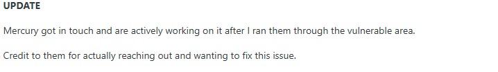 So looks like someone from Mercury is looking at it.