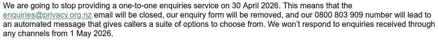 Hopefully those with enquiries will be able to seek assistance from elsewhere.