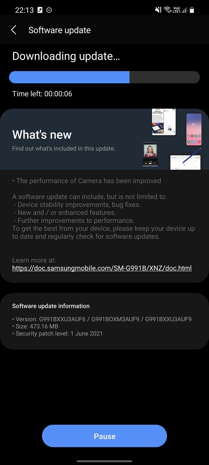 Looking at samfirmware etc they are releasing updates for the S21 with the current month's security patches. For example the BTU (UK unlocked CSC) has had updates: