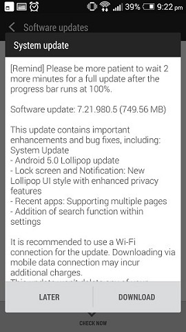 Dingbatt: Did you go ahead and update? If you did I hope you didn't want to go to bed straight away because it was the longest update I have experienced on the M7. A backup is always advisable particularly with this one I think because of the change to ART and a rearrangement of some file locations.