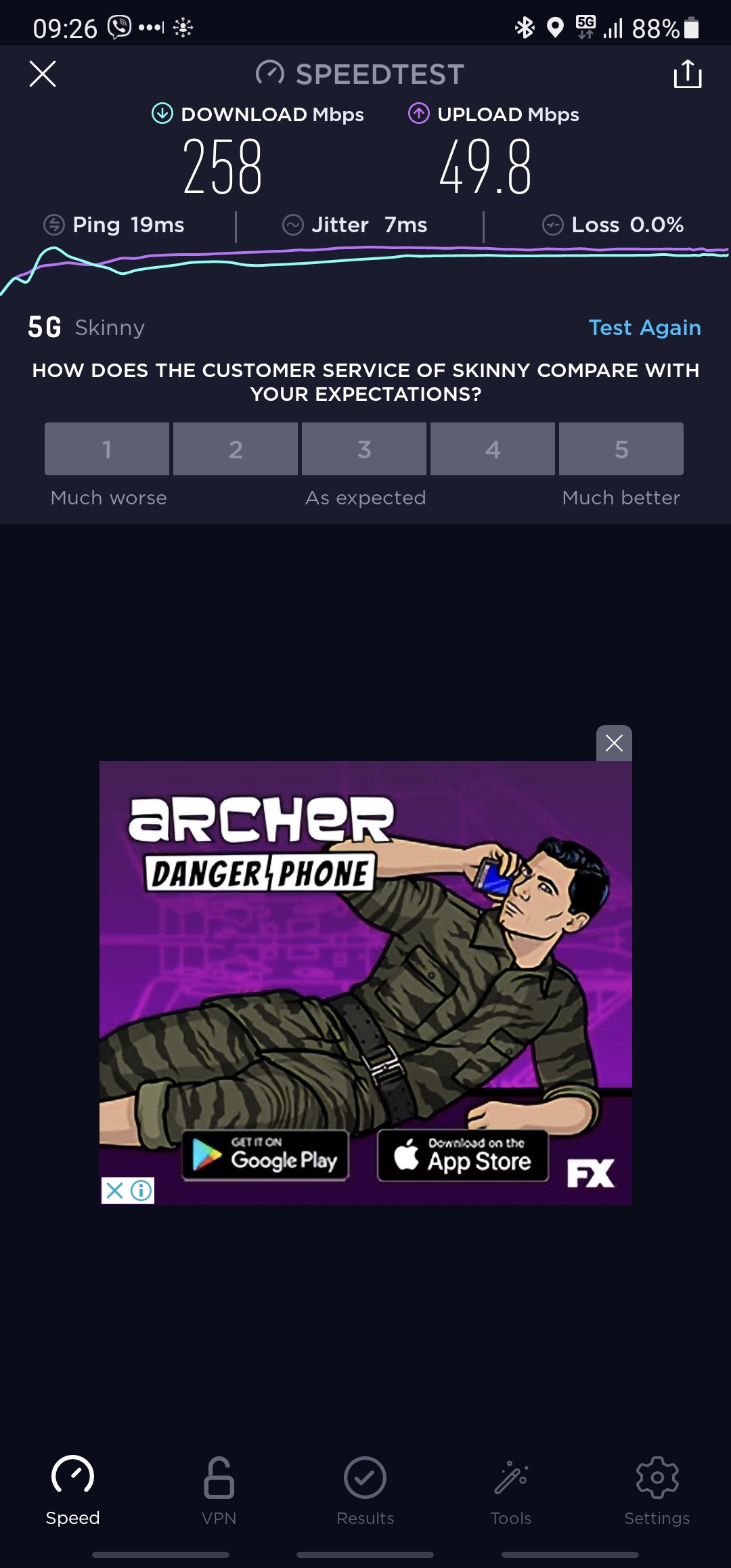 I haven't tried the 5G - I'm not sure I've been anywhere that Skinny has 5G. I'm heading to the Ferry Terminal in downtown AKL tomorrow so I will see if I can get it there.