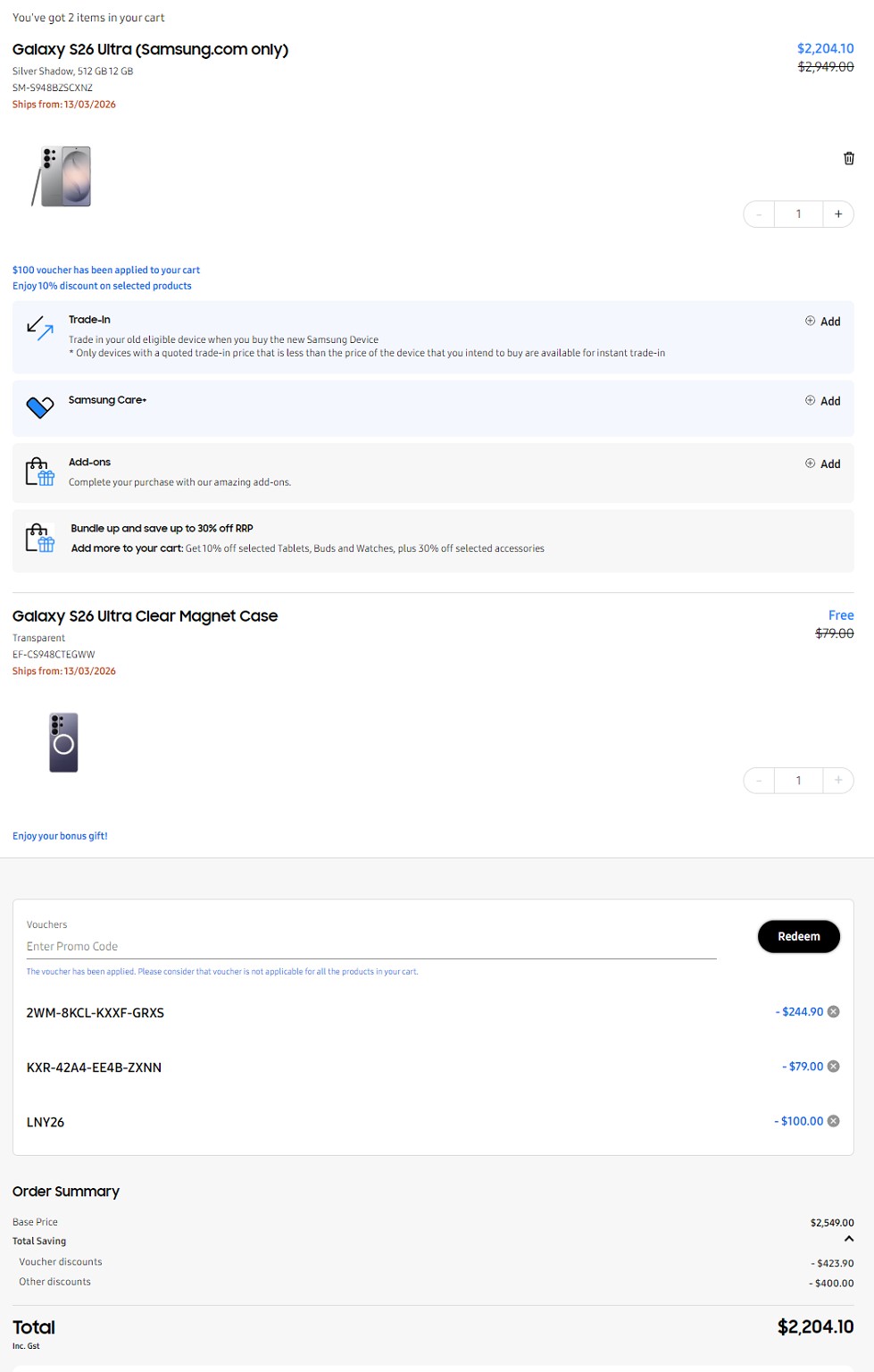 Welcome to use the codes I screenshotted below if you are purchasing for the 10% off + free case.