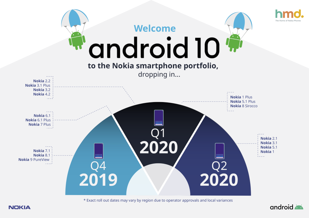 HMD Global is excited to share its roll out plan for Android 10 across the Nokia smartphone family. Starting in Q4 2019, Nokia smartphone fans can get their hands on the Android 10 software upgrade and start enjoying the very latest Android experiences.