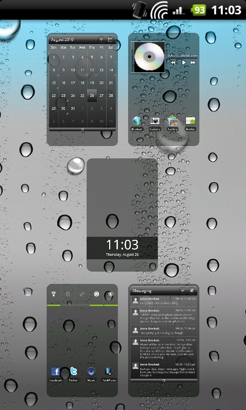 Here is my Work Home screen, I won't post the others, as the e-mail widgets have sensitive information and the other widgets are just the stock sense UI weather widget and the music widget.