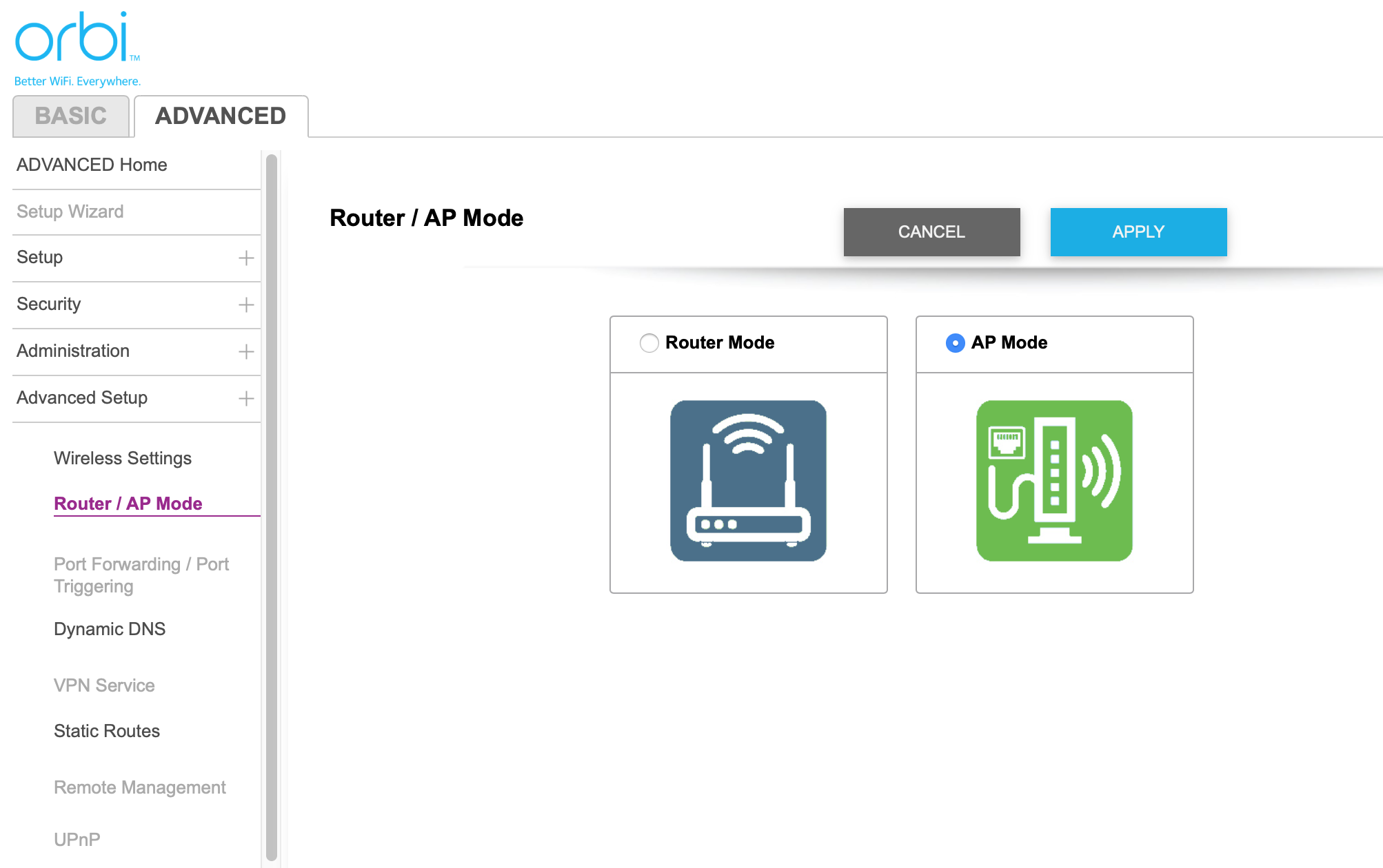 Put the Orbi in AP mode